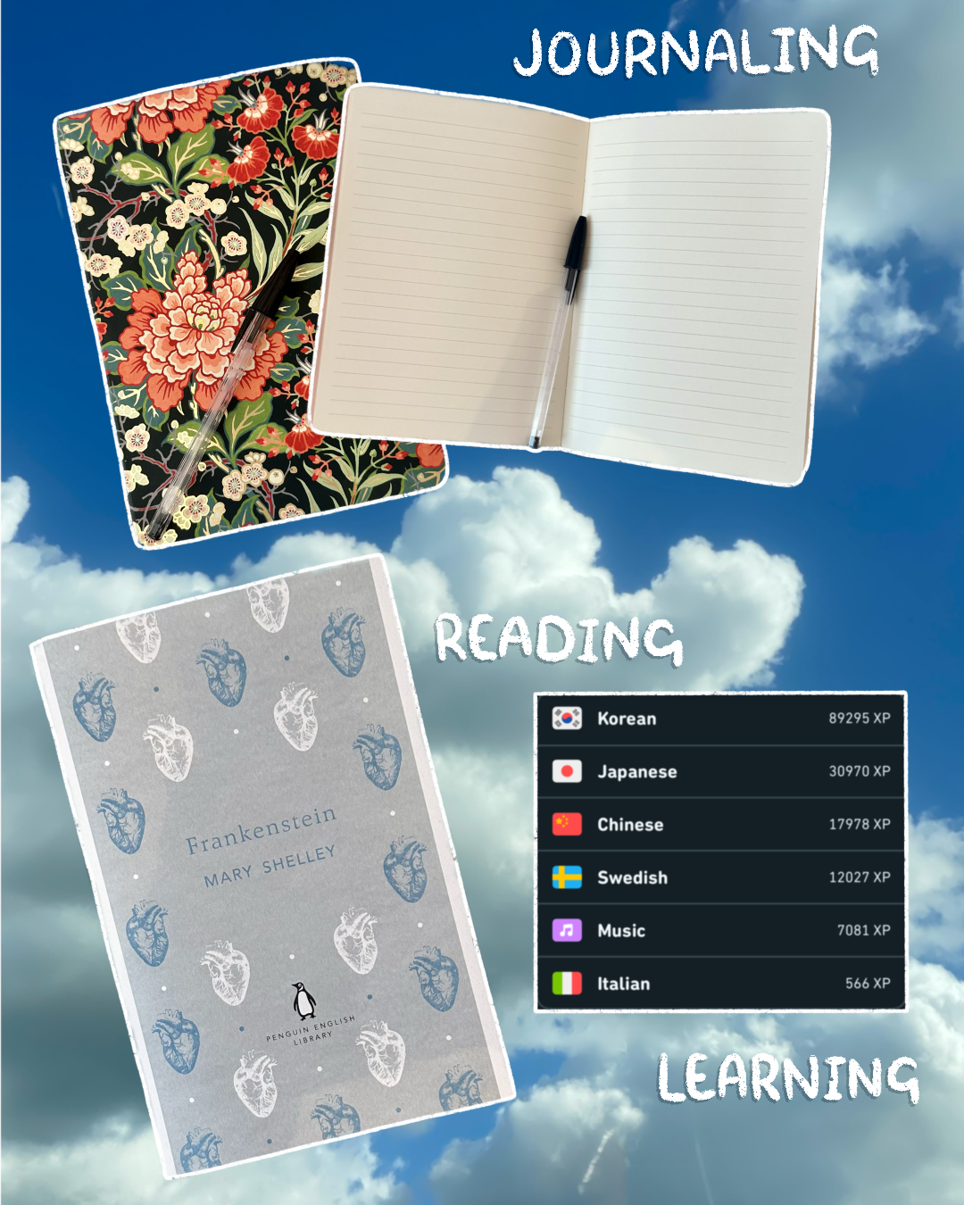 As the day winds down, I take some time around dinner to relax and watch a bit of TV, often a quiz show or a series I enjoy. To end my day on a calm note, I journal, learn a lesson or two in languages, and dive into a good book. Right now, I’m reading Mary Shelley’s Frankenstein, as I’m really interested in classic horror fiction after reading Bram Stoker’s Dracula, which I loved.