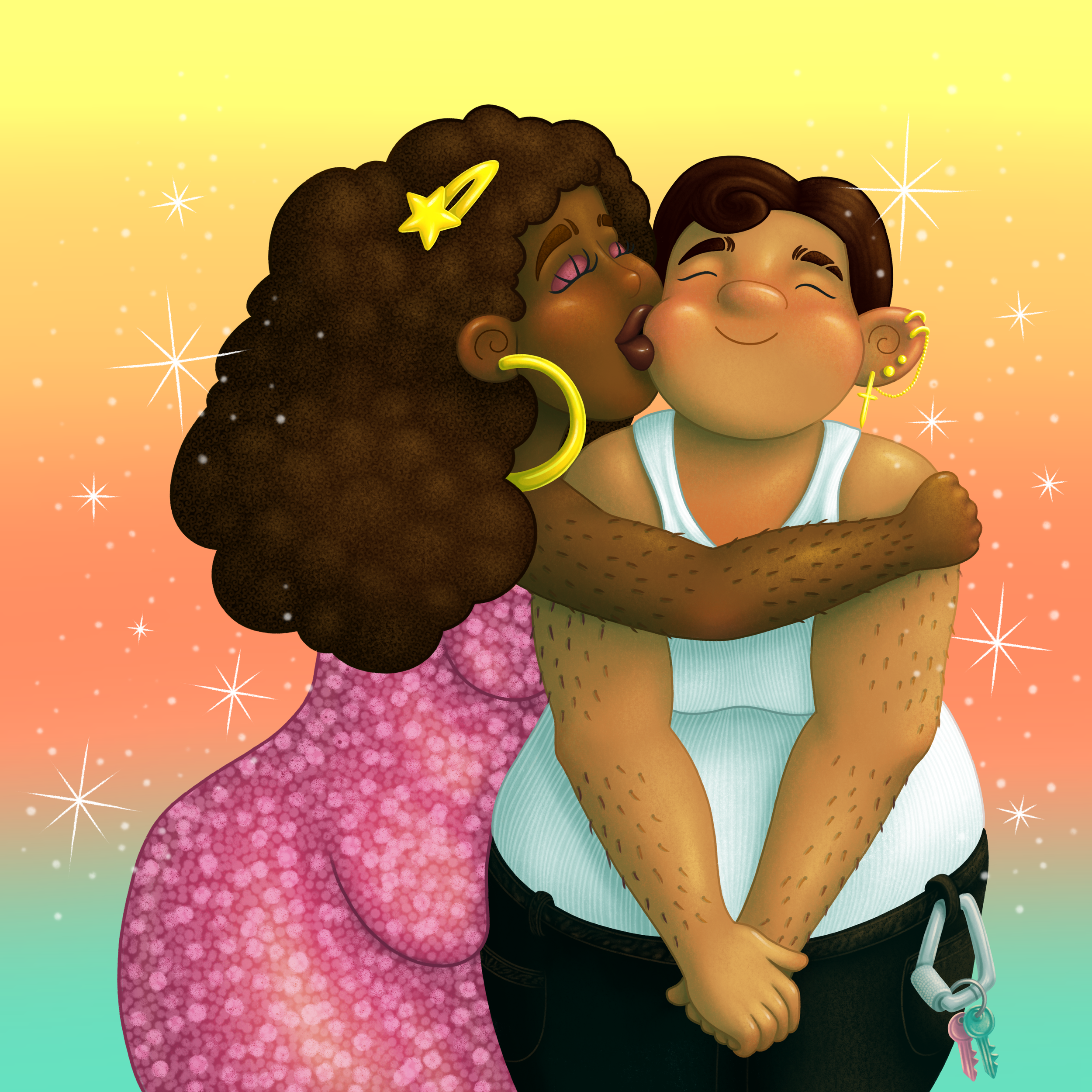 I tend to gravitate towards warm and vibrant colours for my illustrations, as my artwork often celebrates joy and togetherness. For instance, in one of my illustrations, the warm sunset hues evoke a romantic vibe, with pink symbolizing femininity and happiness. I also enjoy incorporating accents of blue to create balance and draw the viewer’s attention.